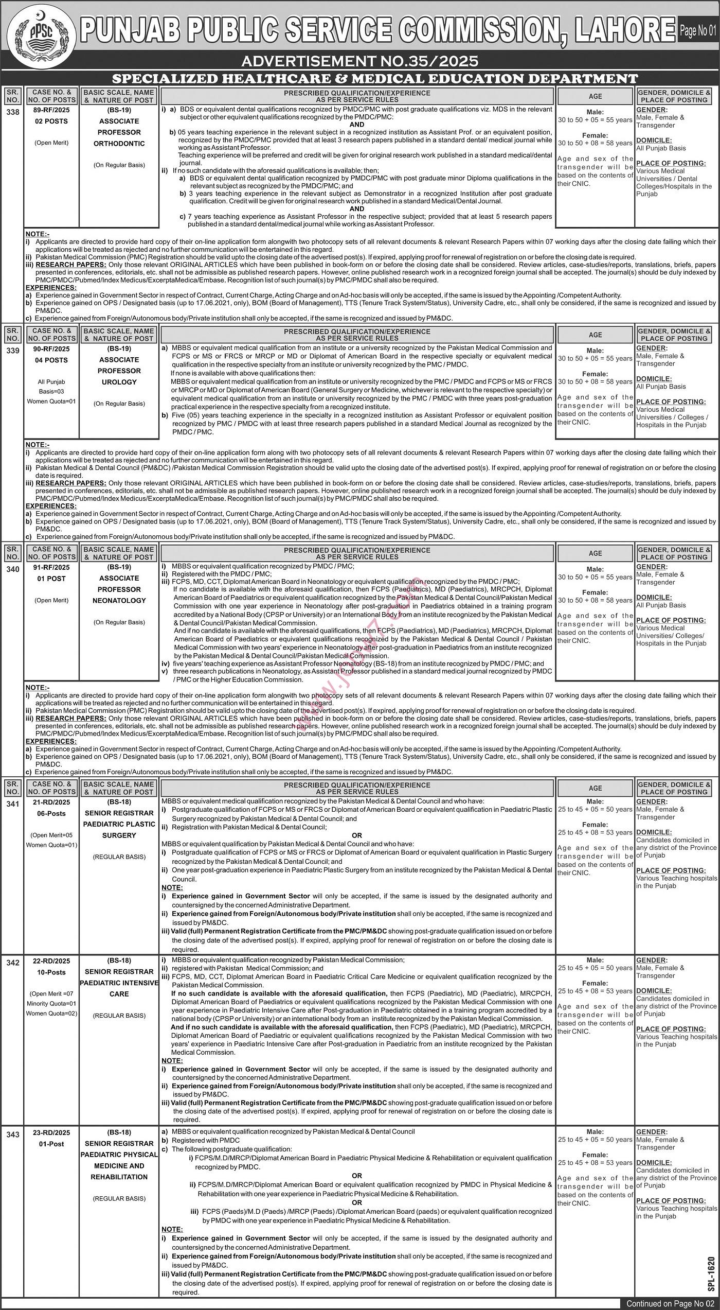 To apply for the Specialized Healthcare & Medical Education Department job in Pakistan Sialkot 2025, candidates must meet the following: